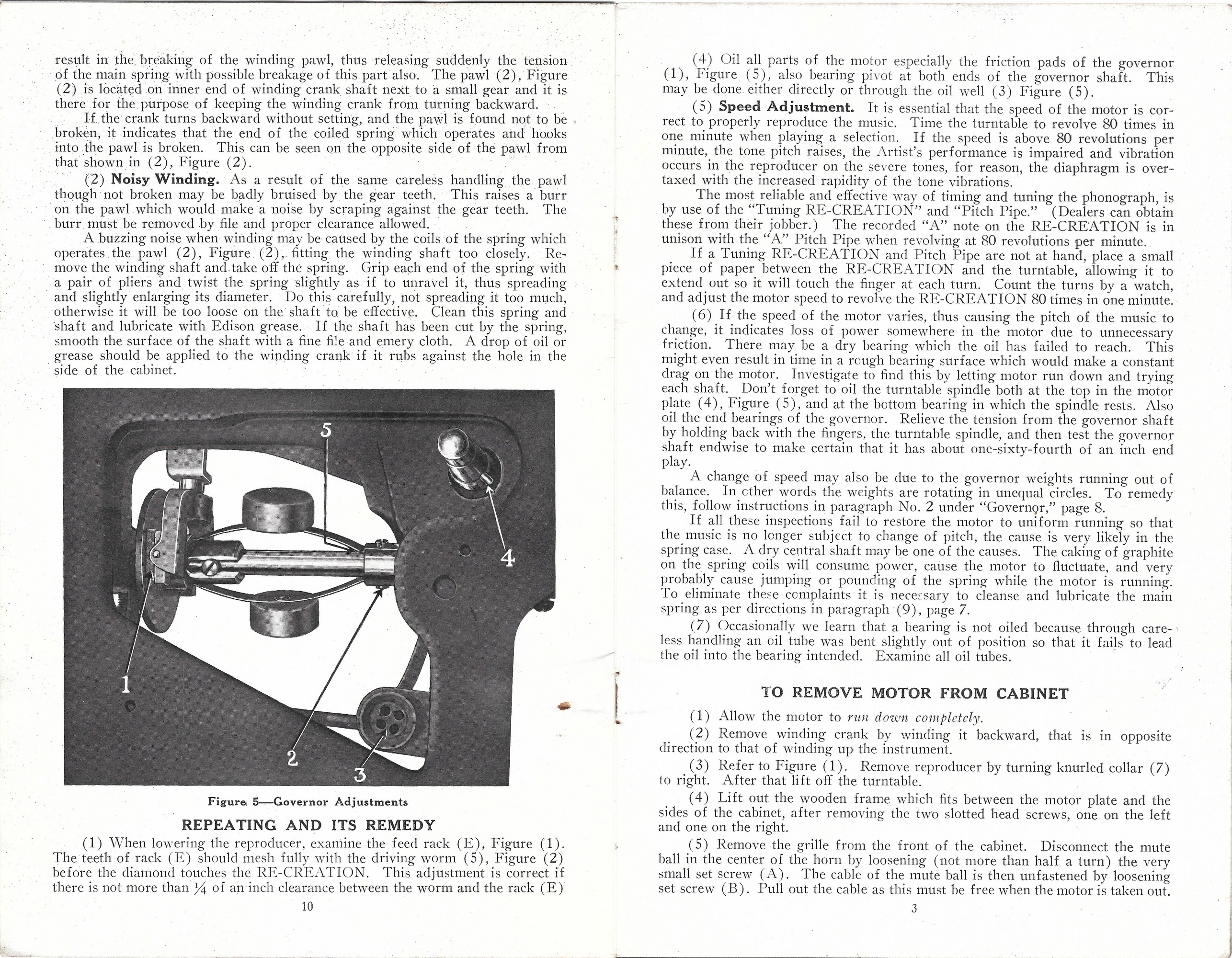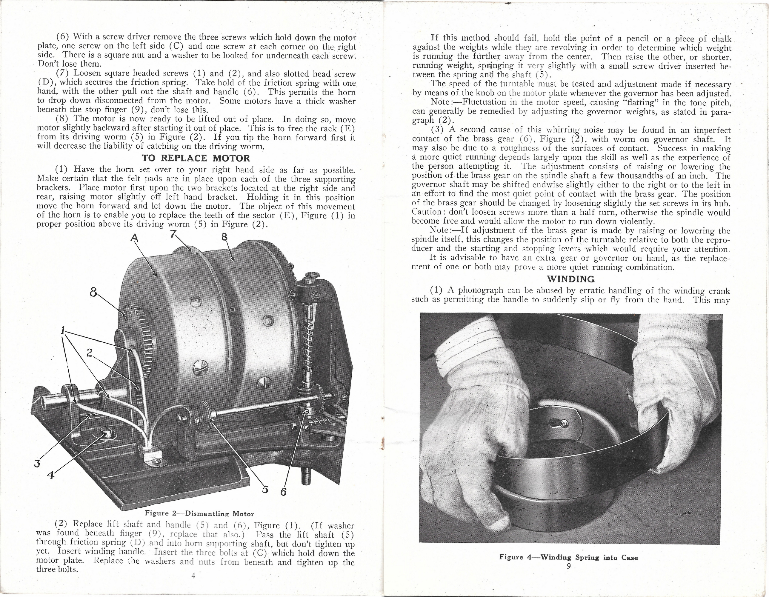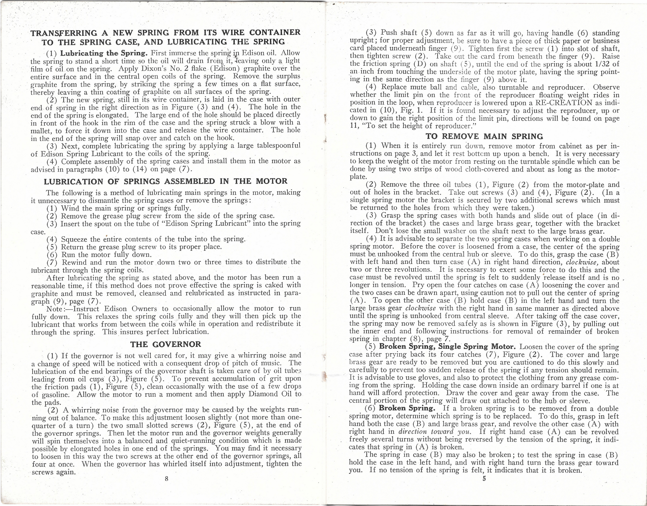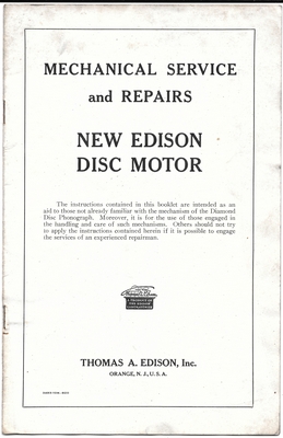 Here are images of the pages of a service manual for the 'new' Edison disc phonograph motor c.1914.