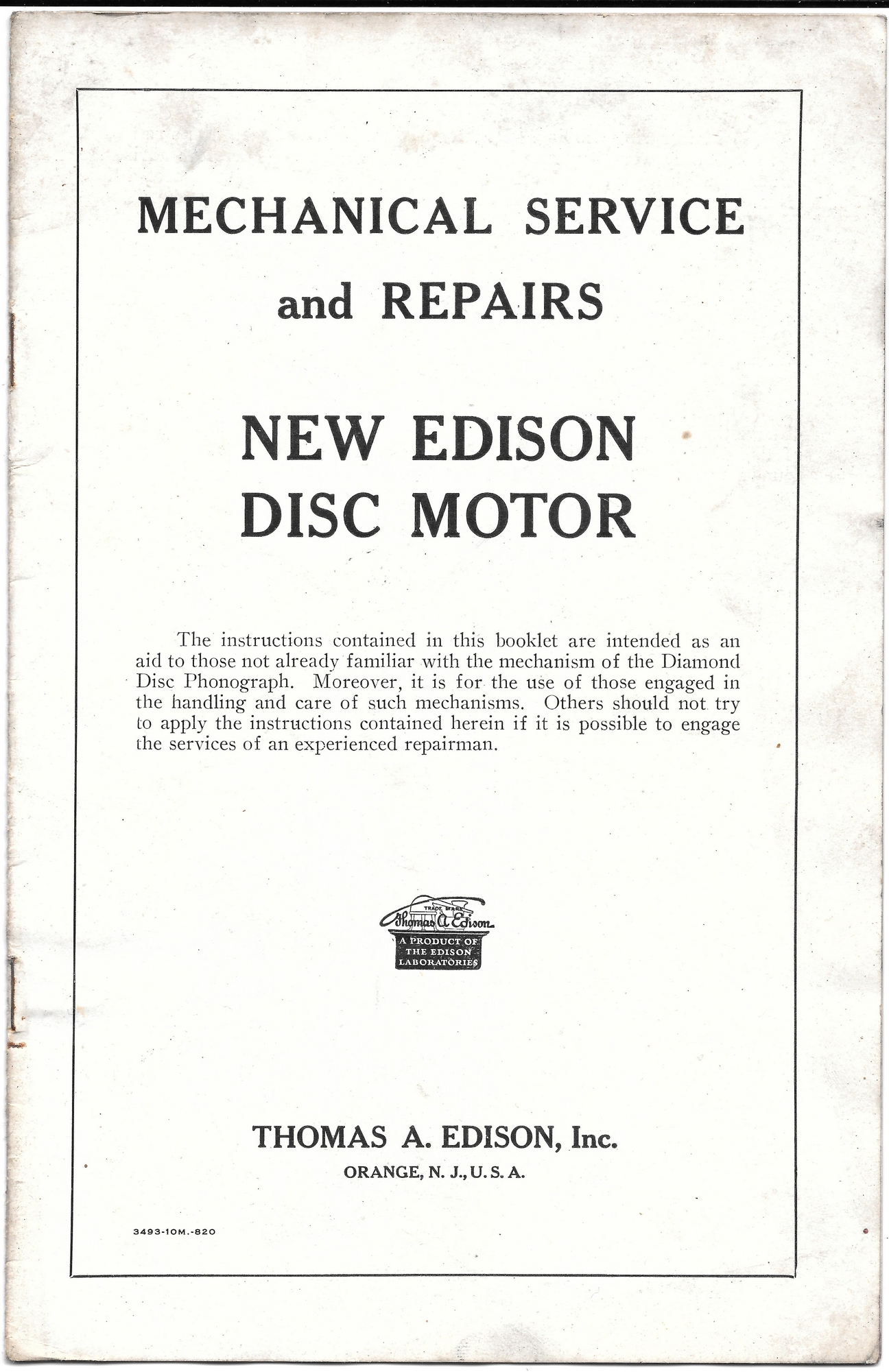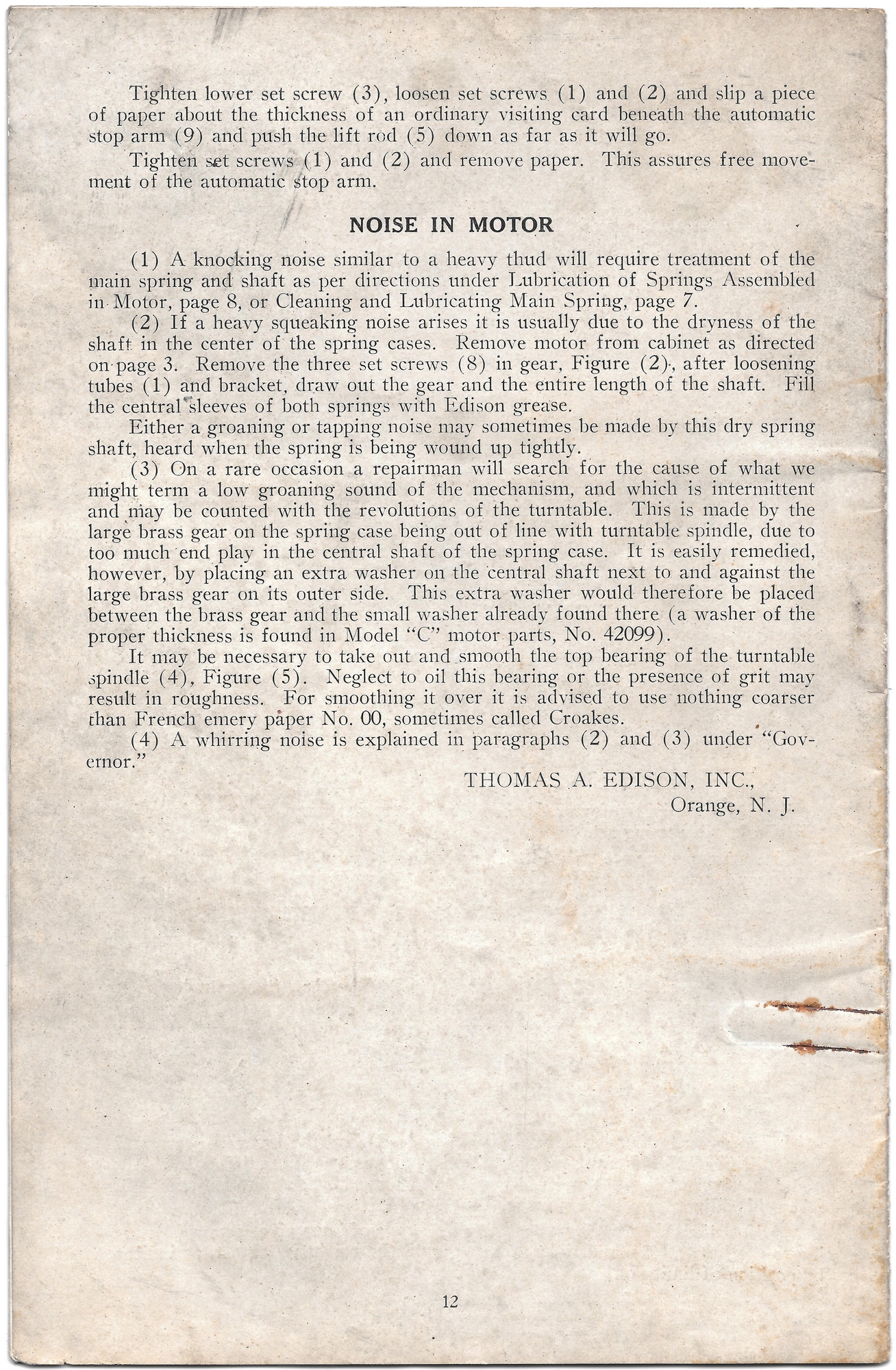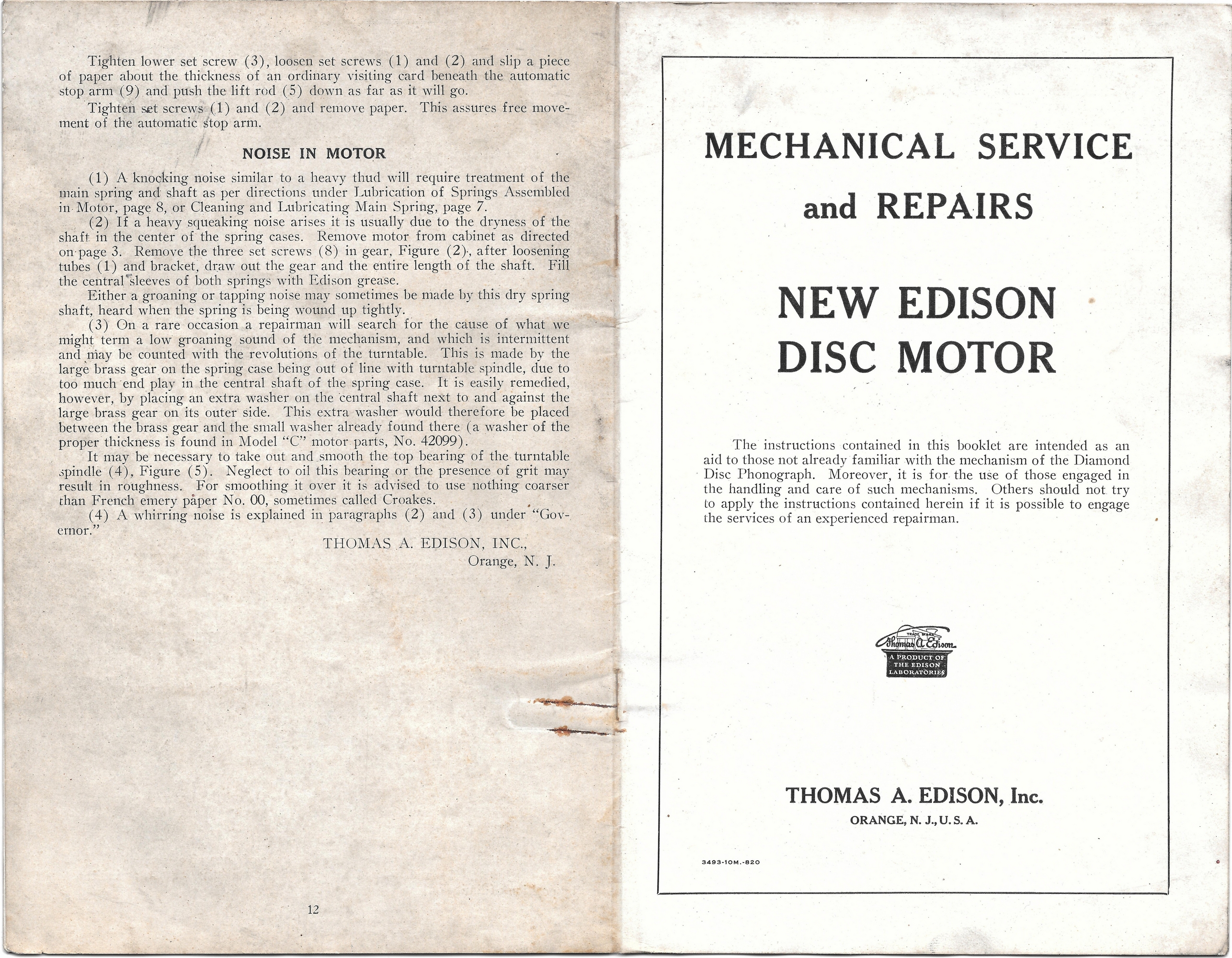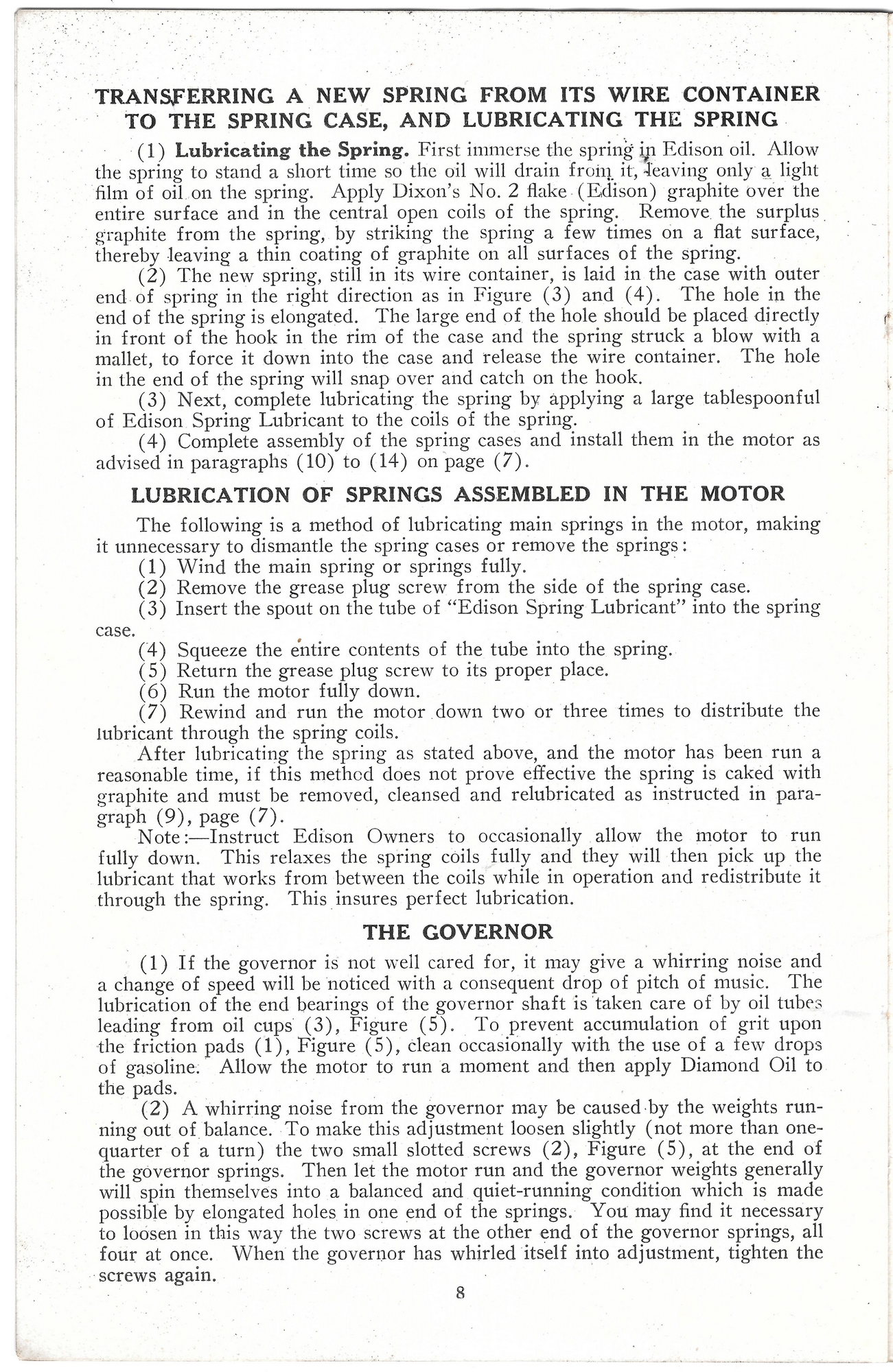 Here are images of the pages of a service manual for the 'new' Edison disc phonograph motor c.1914.