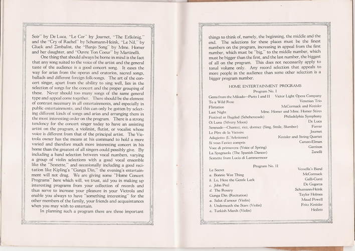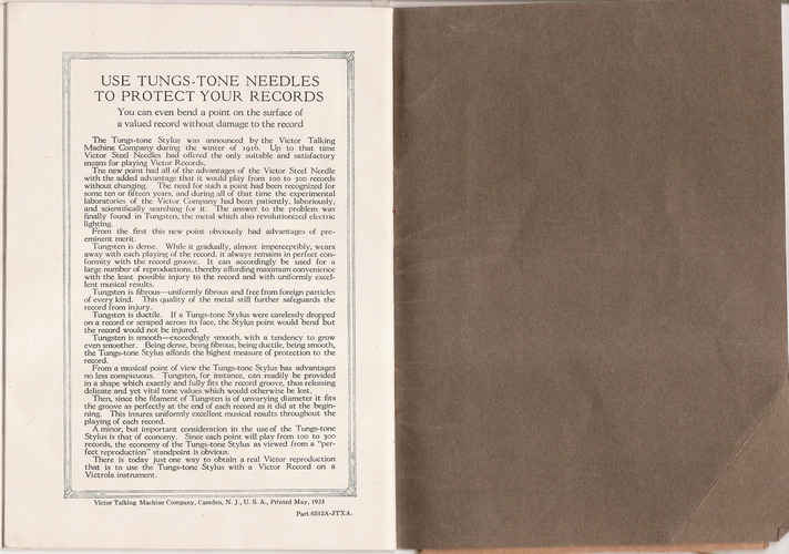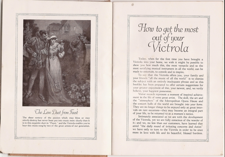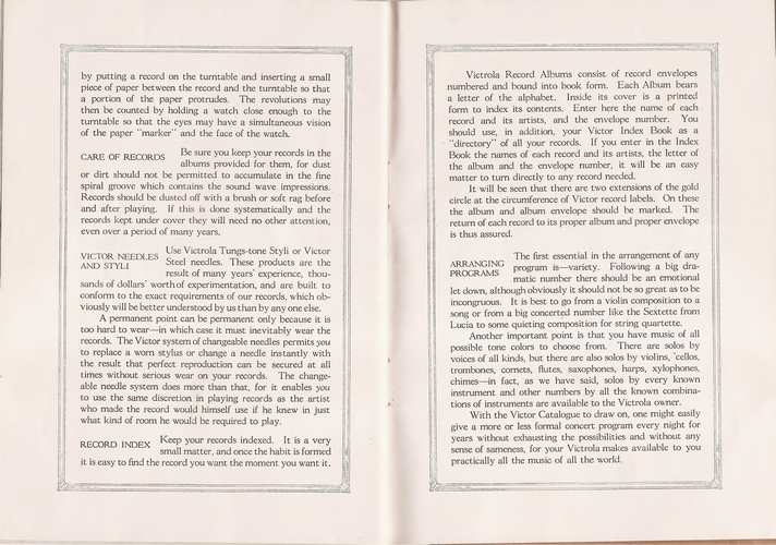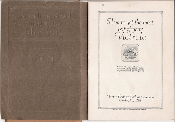 Here are scans of a booklet printed in May, 1923 by the Victor Talking Machine Company entitled "HOW TO GET THE MOST OUT OF YOUR VICTROLA".